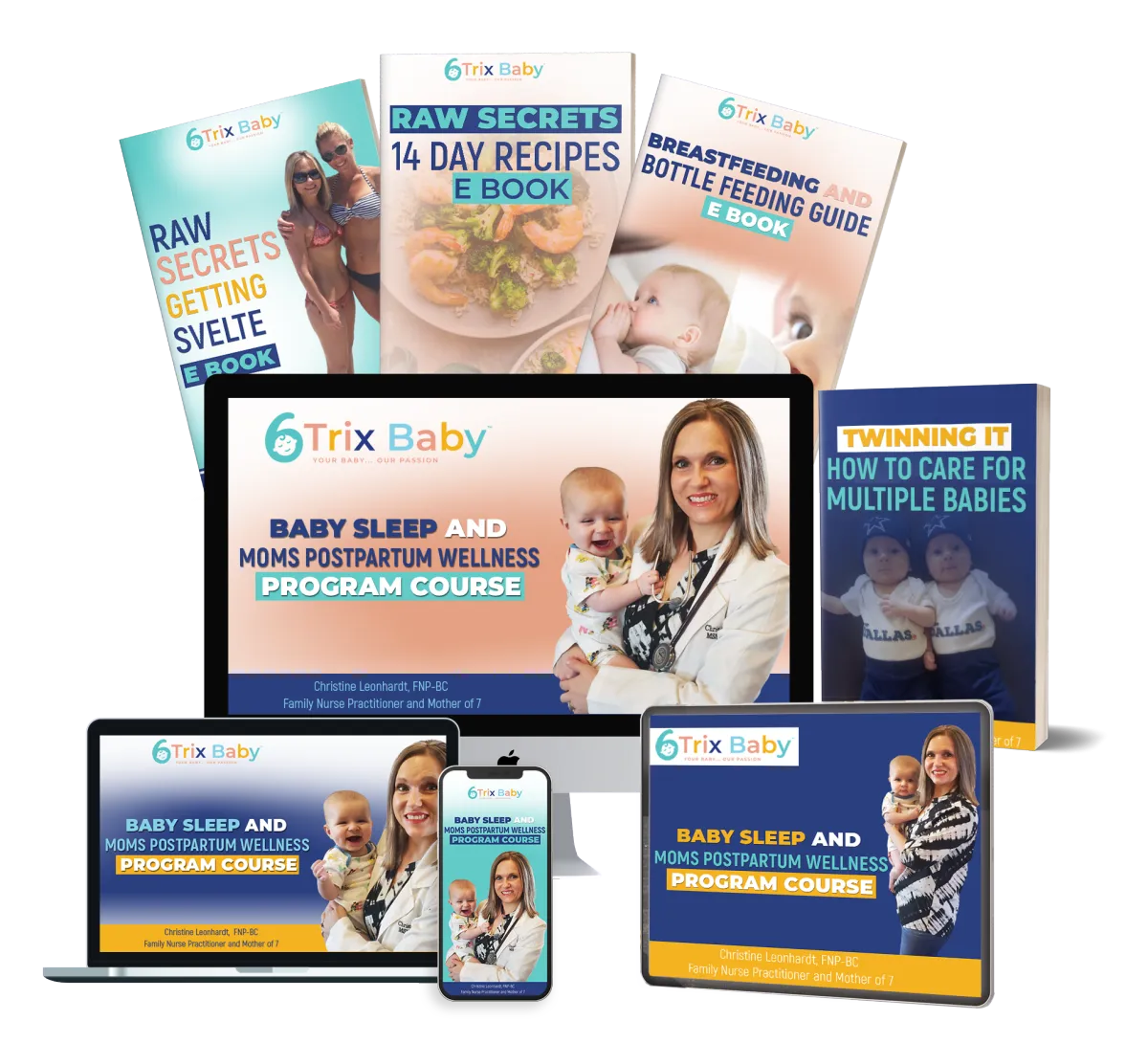 Hi, my name is Christine Leonhardt, founder and CEO of Six Trix Baby. I'm a mother of 7 and a board certified family nurse practitioner with over a decade of experience as a provider and as a labor and delivery/postpartum nurse. Over the years, I've helped hundreds of moms and their infants reclaim their sleep without any feelings of guilt or fear.